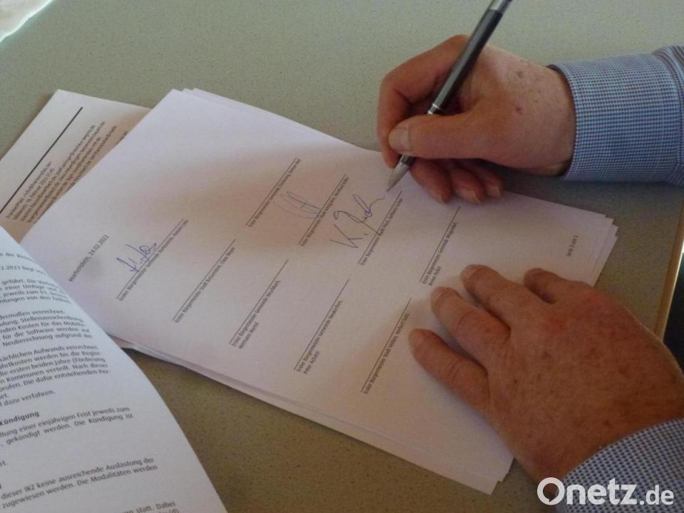 Bei der Frage, welche Kommune die Antragstellung übernimmt und die nötige Stelle schafft, fiel die Wahl auf Hartenstein. Dort trafen sich jetzt die Vertreter aller beteiligten Gemeinden zur Unterschrift unter die Zweckvereinbarung. Sie ist, weil stets Unterlagen anfallen, die es sicher zu verwahren gilt, auf Dauer angelegt.