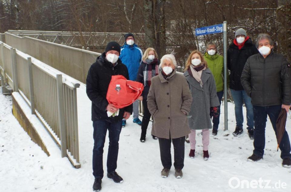 Fast 60 Jahre lang hat Volkmar Krauß mit seiner Frau Resi in der Vilstalstraße in Haselmühl gewohnt und damit in Sichtweite der jetzt ihm gewidmeten Brücke. Bei der Einweihung des Stegs, an dem neben Krauß’ Witwe weitere Familienangehörige teilnahmen, betonte Bürgermeister Roland Strehl, dass es bei der Namensgebung im Gemeinderat keine zwei Meinungen gegeben habe. Einen entsprechenden Antrag hatte die SPD-Fraktion am 23. September 2020 gestellt, der Beschluss folgte am 10. November 2020. Volkmar Krauß war ein geschätzter SPD-Politiker, der am 21. September 2004 zum Ehrenbürger der Gemeinde ernannt worden war. Ehrenbürger kann laut Gemeindeordnung nur werden, „wer sich um die Gemeinde besonders verdient gemacht hat“ – Krauß ist ein Paradebeispiel dafür.