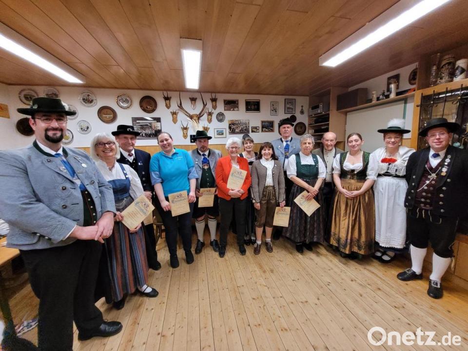 Beim Trachtenverein D'Vilstaler Kümmersbruck gab es Ehrungen (von links): Vorsitzender Markus Gais, Helga Högerl, Willi Högerl, Kathrin Rauch, Florian Bechtl, Paula Neugebauer, Silvia Vetter, Christa Hahn, Johann Hahn, Manuela Kern, Anton Birner, Kathi Gais, 1. Schriftführerin, Sandra Haller, 2. Vorsitzende, Tobias Lehner, 2. Gauvorstand.