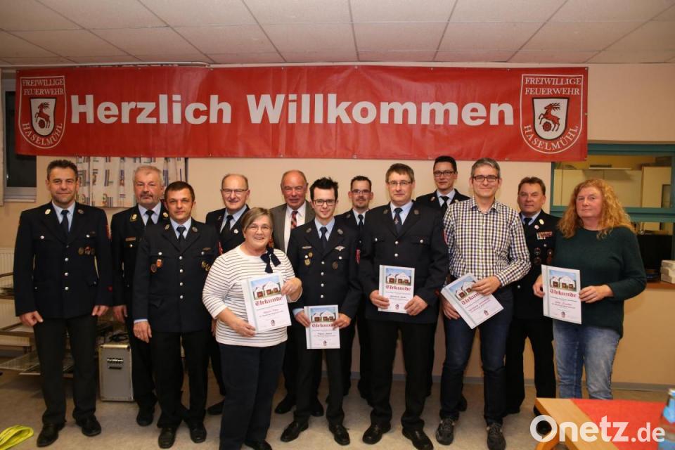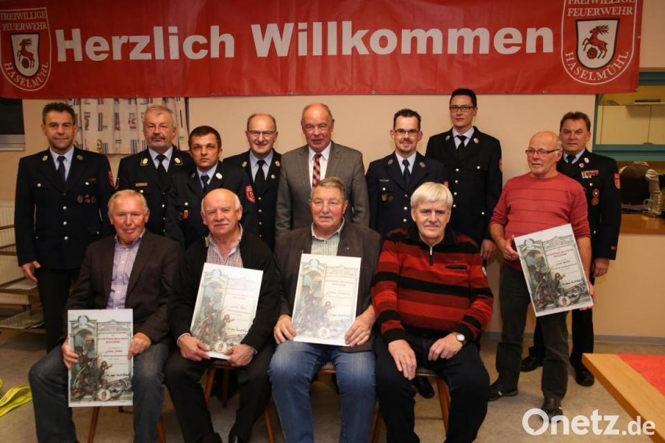 Rudolf Birner, Wolfgang Born, Günter Breitschaft, Ralf Doschat, Heinrich Kapperer, Claus Kofler, Josef Metschl, Armin Richter und Reinhold Rösel stehen bereits 40 Jahre schon der Feuerwehr Haselmühl zur Seite.