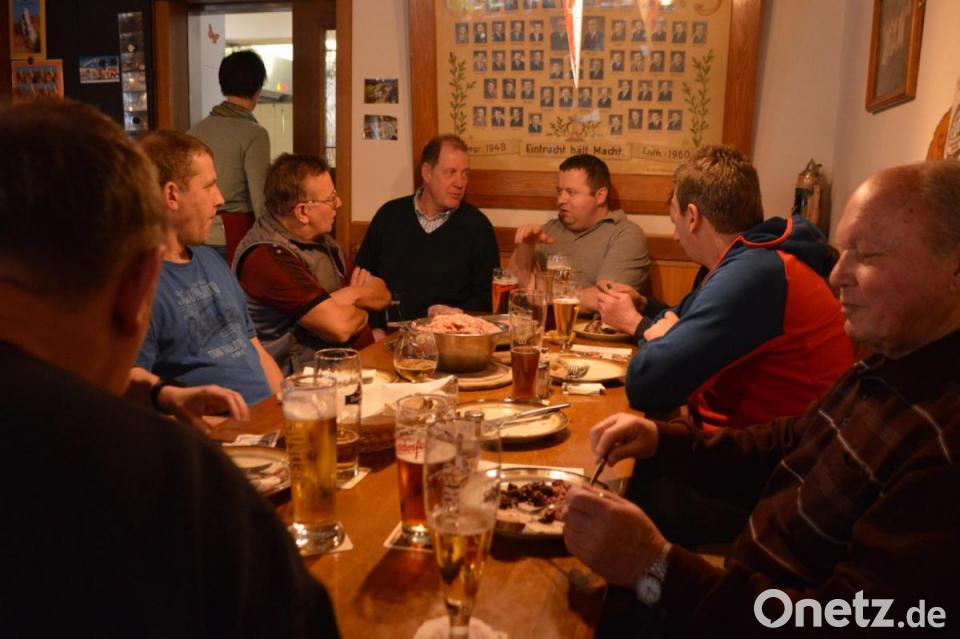 Nun geht's um die Wurst. Genauer: die Blut- und Leberwürste. Ab 9 Uhr steht die Metzgerei dann komplett unter Dampf. Ab und zu schaut Altmeister Georg Mayer vorbei und gibt fachmännische Kommentare ab. Zweiter Bürgermeister Fabian Bräutigam ist zwar Kassenprüfer des Vereins, heute fungiert er zusätzlich als Wurstprüfer und Vorkoster.