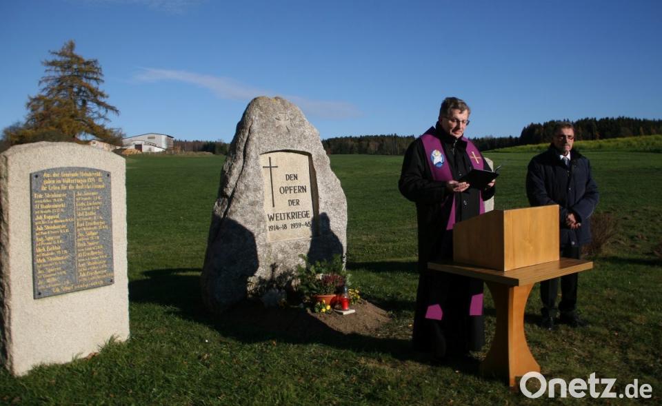 Die Gebete sprach der Waldershofer Stadtpfarrer Pfarrer Bernd Philipp. Deutschland sei ein demokratisches Land, in dem Meinungsfreiheit herrsche. „Die Würde des Menschen ist das höchste Gut“, erinnerte Karl Busch an das Grundgesetz. Man trauere mit den Hinterbliebenen. Busch mahnte: "Unsere Verantwortung aber gilt dem Frieden unter den Menschen. Frieden, Freiheit und die Achtung der Menschenrechte kommen aber nicht von alleine." Der Sprecher ergänzte: „Sie müssen errungen und immer wieder neu erkämpft werden.“ Mit Blick auf die Schutz suchenden Flüchtlinge fügte er an anderer Stelle hinzu: „Es darf kein Zweifel bestehen, dass wir hilfsbereit sind.“ Zusammen mit dem Helmbrechtser Feuerwehr-Vorsitzenden Konrad Ernstberger legte Busch am Kriegerdenkmal einen Kranz nieder.
