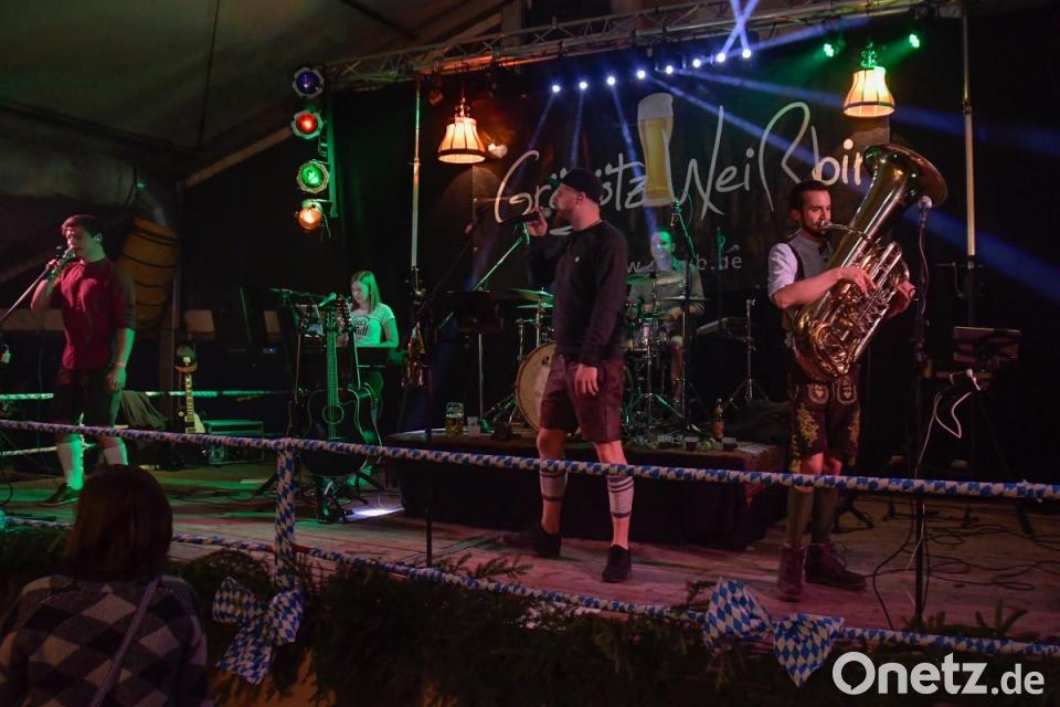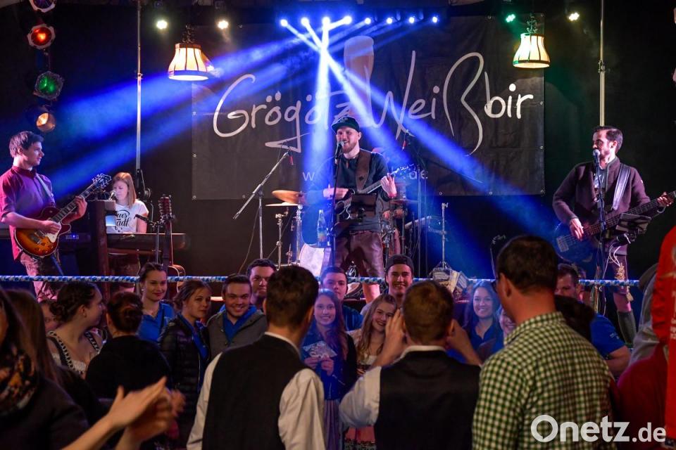 Alles andere als ruhig war es dagegen im Zelt. Dass die Temperaturen im Außenbereich um den Gefrierpunkt lagen, merkte man drinnen nicht. Neben der Zeltheizung heizte die Band Grögötz Weißbir die Party im Zelt an. Während Formel-1-Boliden und Spitzensportler ein Warm-Up brauchen, war das bei den Kirwamoidln und Boum eigentlich nicht nötig: Eine halbe Stunde nach Beginn standen die Ersten bereits auf den Bänken. In der dritten, vierten Runde stand dann das ganze Zelt, es hielt niemanden mehr auf den Sitzen.