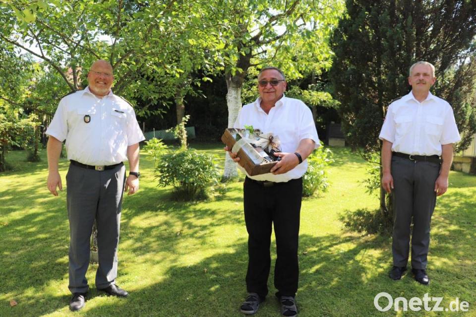 BRK-Kreisbereitschaftsleiter Christian Stahl und sein Stellvertreter Richard Frank haben dem Ausbildungsbeauftragten des Kreisverbandes Tirschenreuth im Bayerischen Roten Kreuz (BRK) zum 60. Geburtstag gratuliert. Bei einem kurzen Besuch in Hermannsreuth überbrachten die beiden Richard Wagner stellvertretend für alle ehrenamtlichen Mitglieder die Glückwünsche und einen Präsentkorb.