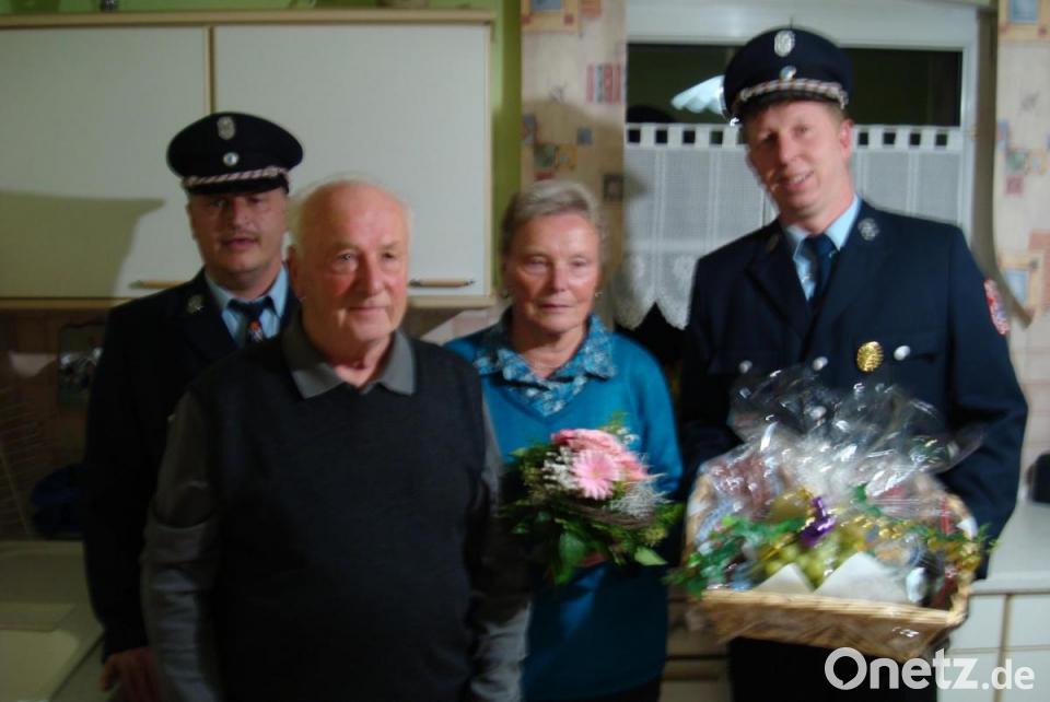 Unter den Gratulanten war auch eine Abordnung der Feuerwehr Hermannsreuth. Die Delegation mit Christian Weigl an der Spitze gratulierte ihrem langjährigen Mitglied und überreichte einen Präsentkorb.