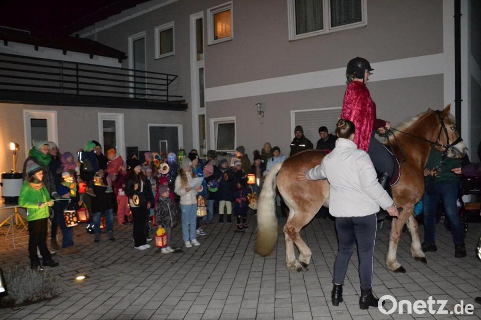 Angeführt wurde der Zug von St. alias Beate Kleber aus Ödbraunetsrieth auf ihrem Pferd, begleitet von ihrem Vater Georg. Stolz trugen die Kinder ihre Laterne voran und sangen dazu Lieder. An Feuerschalen konnten sich die Besucher wärmen. Es gab Kinderpunsch und Glühwein, Bratwurstsemmeln und Grillfleisch. Es waren so viele Kinder und Eltern wie noch nie da. Außerdem gab es kostenlos Schokoladenlutscher, Schokolebkuchen und Stollen. Der Erlös geht im Namen der Dorfgemeinschaft an die Aktion „Antenne Bayern hilft“. Kathrin Kleber dankte der Heumadener Feuerwehr für die Absicherung.