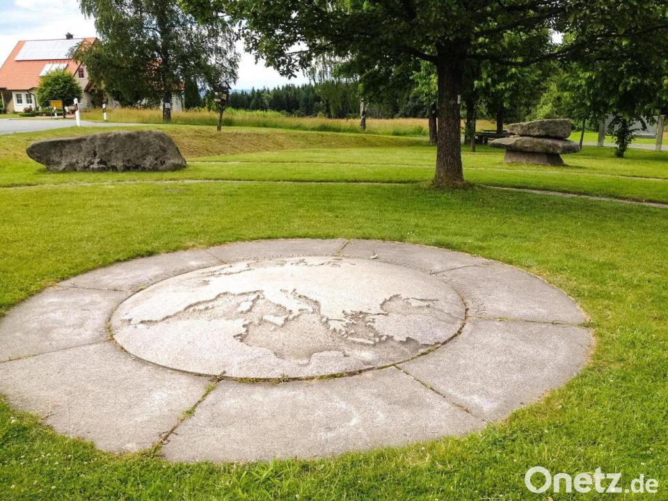 Den Mittelpunkt Mitteleuropas kannst du ganz leicht finden. Denn dort gibt es eine Steinplatte, auf der ein Ausschnitt der Weltkugel zu sehen ist. Außerdem stehen dort Hinweistafeln mit vielen Informationen.