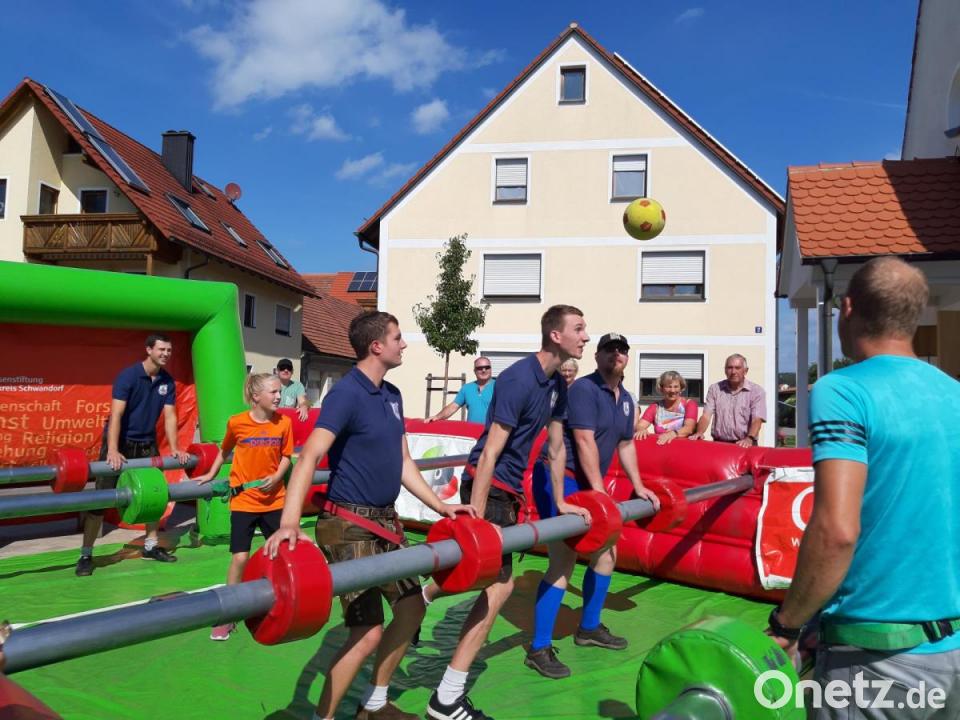 Als Programm-Highlight fand am Nachmittag ein Menschen-Kicker-Turnier statt, bei dem sogar das Wetter mitspielte und die Spieler ins Schwitzen brachte. Sieben Mannschaften aus Etsdorf, Bühl und von ortsansässigen Vereinen kämpften verbissen um jedes Tor. Doch am Ende setzte sich der Burschenverein Hiltersdorf 09 im Finale gegen die Freiwillige Feuerwehr Bühl durch und staubte den 1. Platz ab.