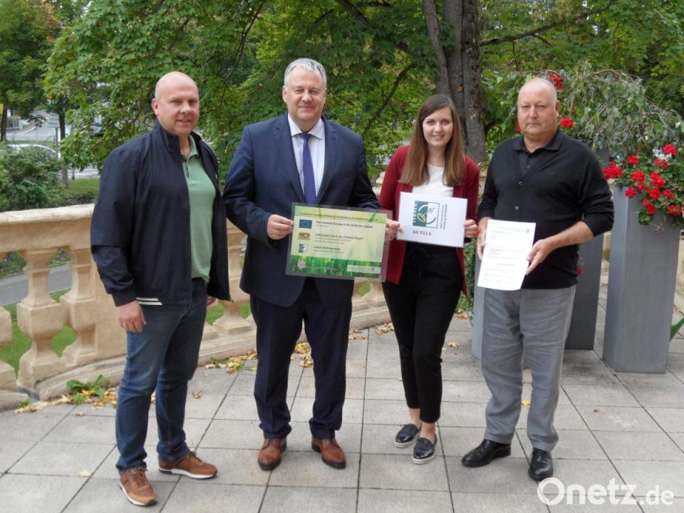 Aus dem Fördermittel-Topf der Lokalen Aktionsgruppe (LAG) Regionalentwicklung Amberg-Sulzbach wurden dafür insgesamt 44.933 Euro bewilligt. Sichtlich mit Stolz nahmen Thomas Heckmann und Christian Reil vom Skiclub den Leader-Förderbescheid aus den Händen von LAG-Managerin Katharina Schenk und Landrat Richard Reisinger, der zugleich Vorsitzender des LAG-Vorstandes ist, entgegen. "Mit der Aufwertung des Langlaufzentrums am Rotbühlsender wird nun ein weiterer toller Beitrag geleistet, um unsere Tourismusregion zu stärken. Es freut mich sehr, dass das Engagement des Skivereins nun mit einer Leader-Förderung unterstützt werden kann", gratulierte Reisinger. Die Gesamtkosten des Projekts belaufen sich auf etwa 89.253 Euro brutto.