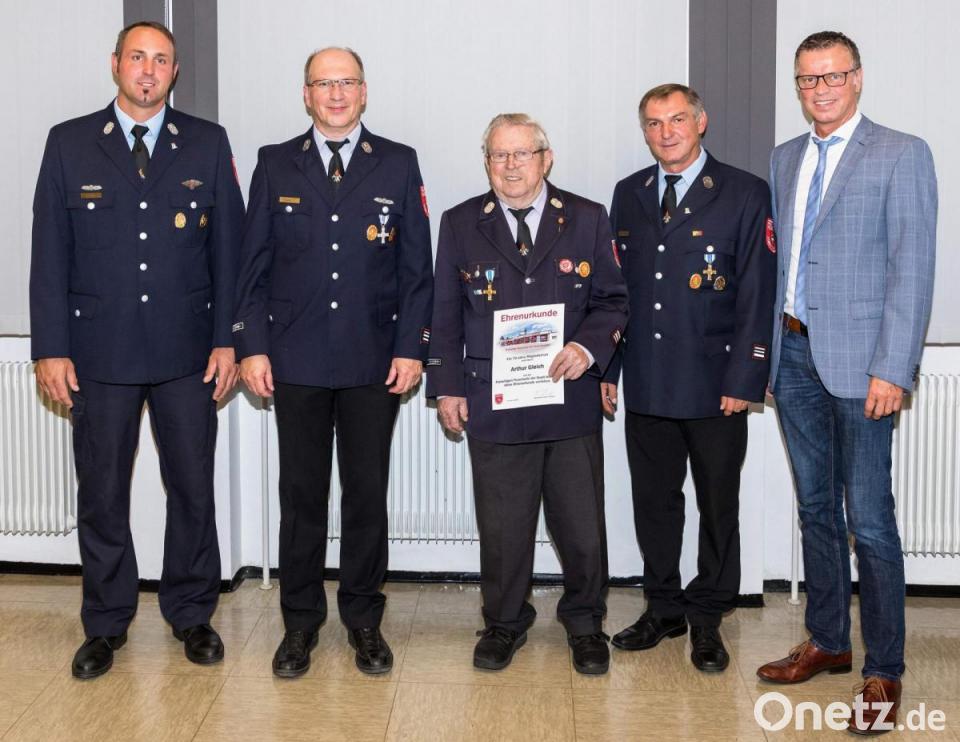 Zu seinem 70-Jährigen bei der Feuerwehr gratulierten nicht nur Vorsitzender Michael Schuminetz und Kommandant Sebastian Jasinsky dem „Feuerwehrmann mit Leib und Seele“. Bürgermeister Hermann Falk dankte Gleich im Namen der Stadt für sein "großartiges Engagement zum Wohle der Feuerwehr, der Bevölkerung und der Gesellschaft". Er sei ein Vorbild für viele Menschen. Falk: „Ich ziehe den Hut vor Arthur Gleich und habe größten Respekt vor seiner langjährigen Leistung im Ehrenamt.“ Arthur Gleich zeigte sich tief bewegt von den ehrenden Worten und beteuerte, dass ihm die Feuerwehr immer ein Herzensanliegen bleiben werde.