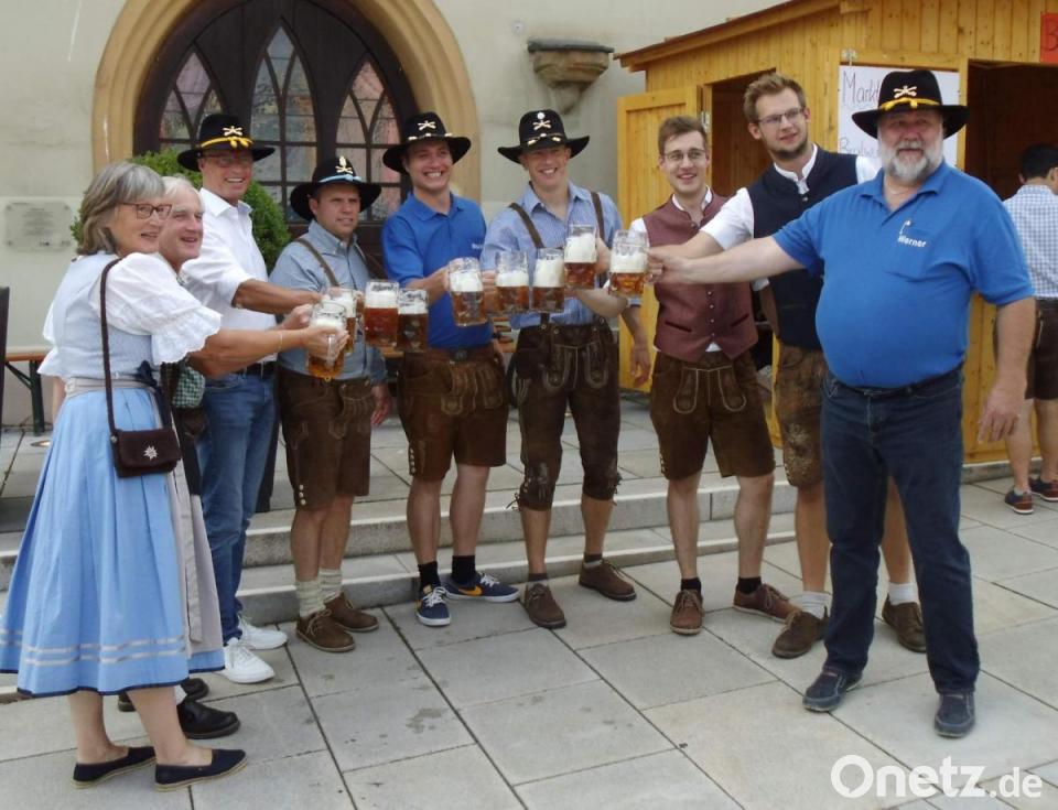 Mit Bürgermeister Hermann Falk, CSM Brian Rathbun, Musikzug-Vorsitzendem Maximilian Stein und dessen Stellvertreter Erik Remhof, NBMB-Kreisvorsitzendem Werner Stein, Schlossbrauerei-Chef Sebastian Dorfner, Senior-Chef Franz Dorfner und Stadträtin Johanna Erras-Dorfner stieß Piosa auf das Gelingen des Festes an. Dazu leisteten dann die Original Fichtelgebirgsmusikanten – in Hirschau noch vom 2019er-Fest bestens bekannt – bis in die späte Nacht hinein mit ihrer Stimmungsmusik und ihren Showeinlagen einen großen Beitrag. Bei idealem Wetter gab es schon in den frühen Abendstunden so gut wie keinen freien Platz mehr.