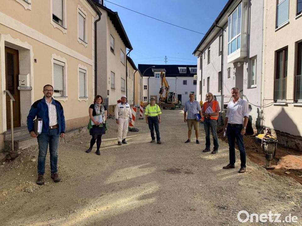 Im Frühsommer hat die Firma Englhard mit dem Ausbau der Postgasse in der Hirschauer Altstadt begonnen. Die Leitungen für Kanal, Fernwärme, Wasser und Telekommunikation sind inzwischen verlegt, der Unterbau ist geschottert Nach dem Betriebsurlaub wurden die Arbeiten wieder aufgenommen. Bürgermeister Hermann Falk (rechts) und Thomas Dotzler (links) vom städtischen Bauamt überzeugten sich gemeinsam mit den Planern und Ausführenden vom Baufortschritt, der voll im Zeitplan liegt. Aktuell schreiten die Pflasterarbeiten für die Regenrinnen voran. Läuft weiter alles nach Zeitplan und spielt auch das Wetter mit, ist mit der Fertigstellung noch in diesem Jahr zu rechnen.