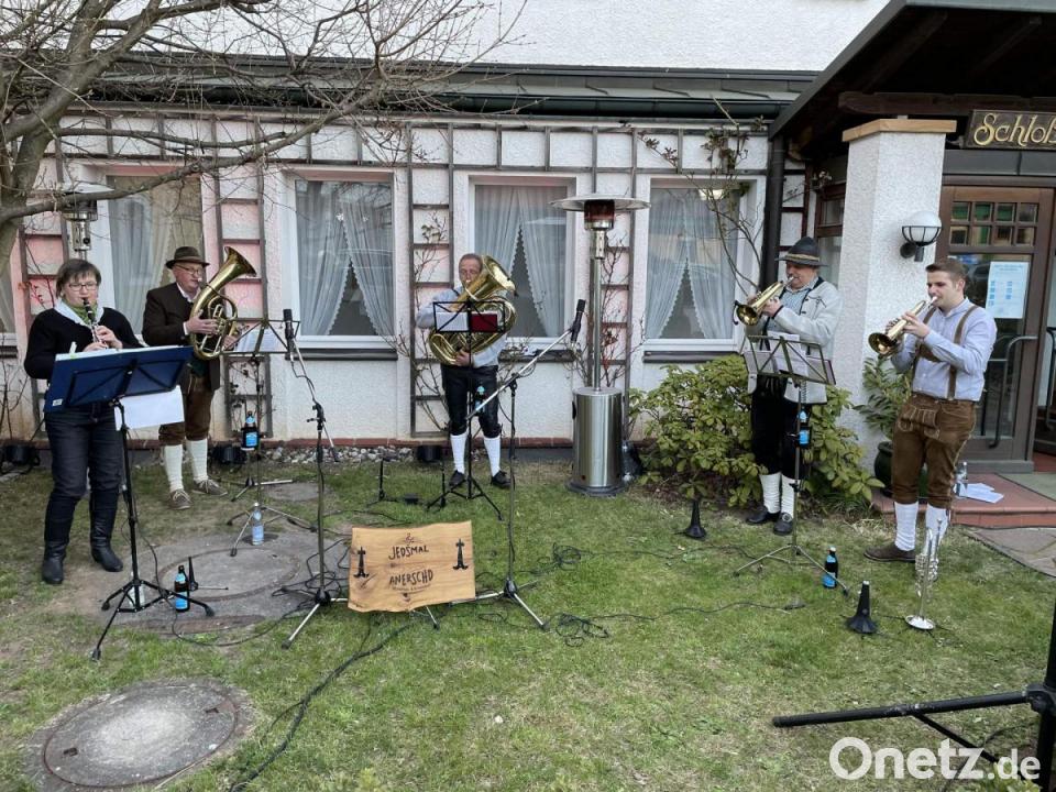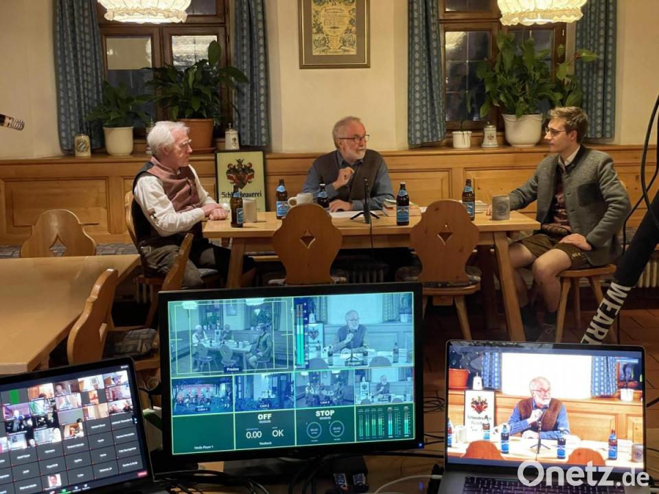 Den Festgästen – rund 300 waren ständig online mit dabei – wurde drei Stunden lang ein gleichermaßen informatives wie unterhaltsames Programm geboten. Eröffnet wurde es mit Fotos von und einem Imagefilm über Hirschau. Den musikalischen Part übernahm die Gruppe „Jedsmal Anerschd“, Matthias und Andrea Fenk, Roland Ertel sowie Josef und Jakob Hofmann spielten im Freien Zwiefache, Polkas, Walzer und Märsche auf.