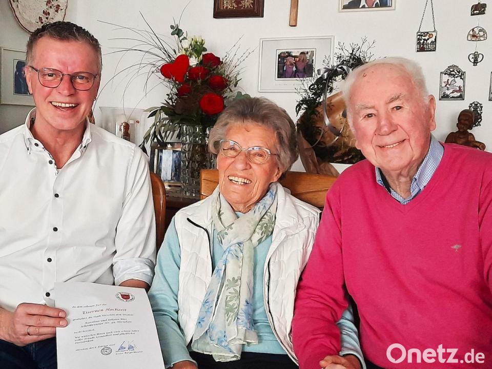 Vor 65 Jahren haben sich Lina und Hans Ries in Hirschau das Jawort gegeben. Der geborene Hirschauer und das Münchner Kindl haben im Anwesen ihrer Eltern in der Schönbrunner Straße geheiratet. Lina Ries, geborene Reinfelder, zog mit ihren Eltern erst nach dem Krieg wieder nach Hirschau, wo ihre Mutter geboren und aufgewachsen war. Gern erinnern sich beide noch an dieses Fest, zu dem sogar ein Schwein und ein Kalb geschlachtet wurden.
