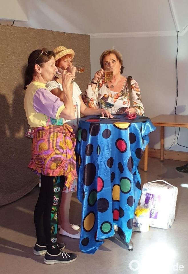 Eine andere Version des biblischen Sündenfalls im Paradies präsentierten Hermann Meier als lieber Gott und Alfons Wanninger als Adam. Über Gott und die Welt ratschten die drei gestressten Hausfrauen Mariechen (Renate Biehler), Susanne (Kerstin Ackermann) und Johanna (Uschi Kederer), nachdem sie ihre Einkäufe getätigten hatten. Susanna fragte sich, wie Männer ganze Kontinente entdecken konnten, wenn sie nicht einmal die Butter im fast leeren Kühlschrank finden.