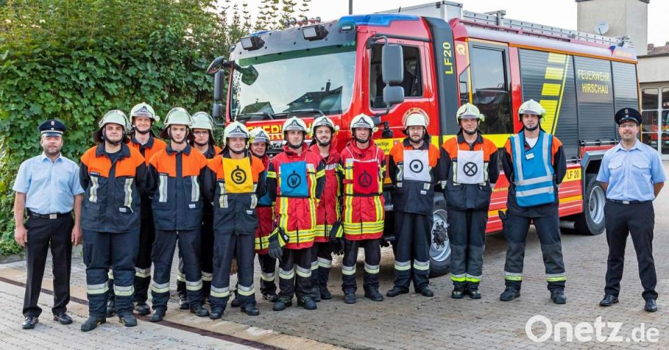Das Üben hat sich ausgezahlt. Zwei Gruppen der Hirschauer Feuerwehr absolvierten erfolgreich die Leistungsprüfung „Die Gruppe im Löscheinsatz – Variante 3“. Dabei kam erstmals das neue Löschfahrzeug (LF) 20 zum Einsatz. Zwei Wochen lang hatte sich die zwölf Feuerwehrleute unter der Leitung von Kommandant Sebastian Jasinsky und seines Stellvertreters Claus Meyer intensiv auf die Prüfung vorbereitet. Bei der Abnahme konnten sich die beiden Schiedsrichter Kreisbrandmeister Marco Weiß und Horst Kellner davon überzeugen, dass die Ausbildungsarbeit reichlich Früchte getragen hat. Die Gruppen, deren Mitglieder zu den Prüfungsstufen 1 bis 6 gehörten, hatten Fragen zur Gerätekunde, zur Ersten Hilfe sowie zu den Themen Gefahrgut und Hinweiszeichen zu beantworten und Knoten und Stiche anzufertigen. Dann erfolgte der Löschaufbau, bei dem zum ersten Mal das neue LF 20 zum Einsatz kam. „Zimmerbrand im Erdgeschoss, keine Menschen und Tiere in Gefahr“ – so lautete der Einsatzbefehl für beide Gruppen. Die Prüfung forderte die Wasserentnahme aus einem Unterflurhydranten innerhalb von 300 Sekunden, das Verlegen von Schlauchleitungen und die Vornahme von zwei Stahlrohren. Als Erschwernis kommt bei der Variante 3 hinzu, dass der Angriffs- und der Wassertrupp mit schwerem Atemschutz zur Brandbekämpfung ausgerüstet sind. Zusätzlich musste eine Verkehrsabsicherung aufgebaut werden. Nach dem Löschaufbau musste innerhalb 160 Sekunden eine Saugleitung mit vier Schläuchen aufgebaut werden. All dies gelang den Prüflingen. Für ihre saubere Arbeit ernteten sie bei der Abschlussbesprechung großes Lob von den Schiedsrichtern. Anerkennende Worte fand auch Kommandant Jasinsky, der zu einer Brotzeit in die Florianshütte des Feuerwehrhauses einlud. Die Prüflinge waren: Stufe 6: Claus Meyer, Christoph Erras und Albert Sterk; Stufe 5: Bernhard Meyer; Stufe 4: Sebastian Jasinsky, Felix Hiermer, Nico Schuminetz und Thomas Wittmann; Stufe 2: Daniel Brearley, Marco Schuminetz und Sebastian Braun, Stufe 1: Patrick Groher.