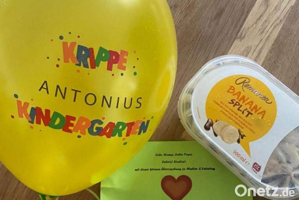 Not soll bekanntlich erfinderisch machen. Von dieser alten Weisheit ließen sich heuer die Erzieherinnen des Hirschauer Antonius-Kindergartens hinsichtlich einer Mutter- und Vatertagsfeier leiten. Die Corona-Pandemie machte das sonst übliche Fest in den Räumen des Kindergartens unmöglich. Leiterin Alexandra Pirzer und ihre Kolleginnen entschlossen sich zu einer Aktion für ihre Kinder und deren Eltern, von der im Vorfeld nicht einmal die Mädchen und Jungen etwas wussten. Gerätselt hatte man sicher in den Familien, warum sie am Mittwoch zwischen 17 und 18 Uhr alle zu Hause sein sollten. Die Lösung: Das Kita-Personal machte sich auf eine Rundfahrt durch Hirschau und besuchte in Zweiergruppen, aufgeteilt auf drei Autos, die mit Luftballons und Eis voll bepackt waren, sämtliche Familien. An der Haustür überreichten sie ihre Mutter- und Vatertagsüberraschung. Für jedes Kind gab es einen Luftballon mit dem Kita-Logo und für die gesamte Familie eine große Packung Eis. Ob groß oder klein – die Freude war bei allen riesengroß. Das Fest war gerettet.