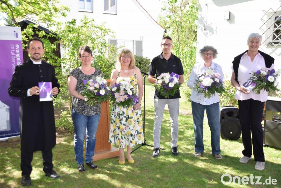 Pfarrer Fischer bedankte sich bei den Autoren, Pfarrerin Heidi Kurz, Margot Biegler, Felix Hiemer, Ulrich Gerlach und Ingrid Schlosser. Er überreichte ihnen ein Exemplar der frisch gedruckten Chronik und einen Blumenstrauß. Die Chronik kann zu den Öffnungszeiten des evangelischen Pfarramts (dienstags von 14 bis 17 Uhr, freitags von 10 bis 12 Uhr) erworben werden.