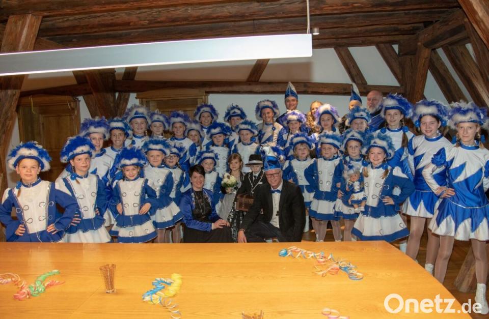 Dann schlug für Bürgermeister Hermann Falk endgültig die Stunde der Wahrheit. Er musste den Rathausschlüssel und die - wieder einmal - leere Stadtkasse herausrücken und dem Prinzen und der Prinzessin aushändigen. Falk nahm’s gelassen: „Ohne Kasse kann ich leben, das Geld hab ich schon vorher ausgegeben. Ich gebe gern den Schlüssel her vom Ratehaus und gehe in die weite Welt hinaus und rufe dann ja ach so froh ganz laut Hirschau oho!“ Der schmucken Prinzessin überreichte er einen Blumenstrauß. Diese revanchierte sich mit einem vorsichtig-zarten Wangenküsschen und einem Orden. Mit einem solchen wurden auch Musikzug-Chef Maximilian Stein, Co-Gardetrainerin Michaela Meier und Regina Merkl dekoriert. Letztere ließ es in der Stadtkasse klingeln. Sie zahlte freiwillig zehn Euro Strafe dafür, dass sie schon am frühen Morgen um 7.58 Uhr, also vor 11.11. Uhr, „Hirschau oho“ gerufen habe, weil sie so heiß auf den Faschingsauftakt gewesen sei. Sie versäumte es nicht, ihren beiden Co-Trainerinnen Michaela Meier und Annika Scheffler für ihre Unterstützung zu danken.