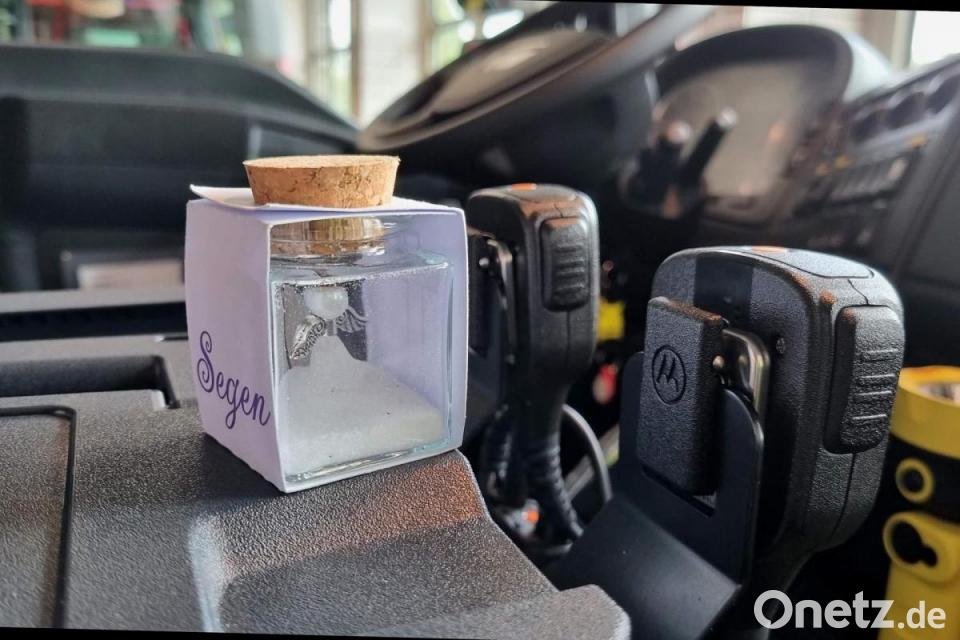 Stadtpfarrer Hofmann und Pfarrer Fischer nahmen die Segnung gemeinsam vor: „Nun ist das neue Fahrzeug zusätzlich zu seiner umfangreichen Ausrüstung auch mit dem kirchlichen Segen ausgestattet und kann zum Segen für die Menschen hier in der Region, in der Stadt und der Umgebung werden. Zum Symbol dafür, dass andere zum Helfen bereit sind, wo es nötig ist, und dass niemand allein gelassen wird in der Not.“ Als letzten noch fehlenden Ausrüstungsgegenstand überreichte Pfarrer Fischer an Kommandant Jasinsky einen kleinen Schutzengel. „Für diesen wird sich gewiss noch ein Platz im neuen LF 20 finden“, sagte er.