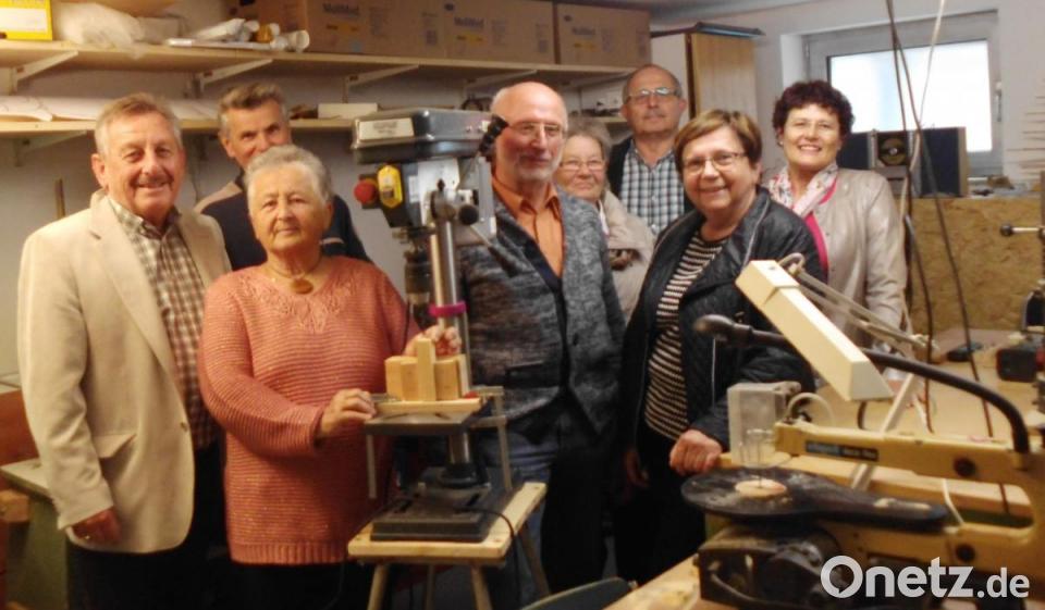 Seit Januar dieses Jahres stehe der Gruppe nach dem dritten Umzug nun ein großzügiger Arbeitsraum zur Verfügung. Seitdem könnten auch Rollstuhlfahrer in der Gruppe mitarbeiten. Mit der neuen Bohrmaschine erfülle der Förderkreis den Holzwerkern aus zwei Gründen einen Herzenswunsch. Zum einen könne mit ihr wesentlich präziser gebohrt werden. Dass die neue zum zweiten deutlich leiser ist als die alte, ließ Josef Kohl die Gäste live miterleben.
