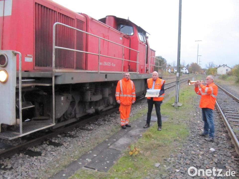 Rauchs letzte Fahrt endete am Hirschauer Bahnhof, wo ihn Claus Barth, der Leiter des Güterverkehrs der DB Nordostbayern, zusammen mit seinem im Juni pensionierten Kollegen Franz Enderer erwartete. Enderer, Trompeter beim Hirschauer Musikzug, begrüßte den überraschten Rauch mit dem Feierabendlied.