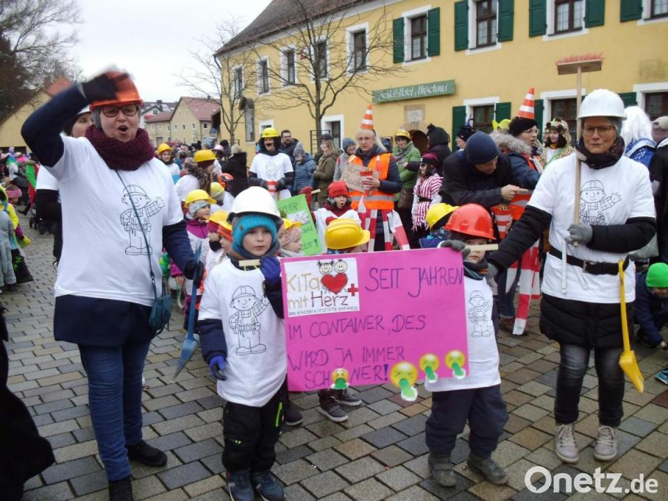 Nicht fehlen durften die Kleinen des Antonius-, Marien- und St. Wolfgang-Kindergartens und der Ehenfelder Kita mit Herz. Sie machten plakativ auf ihre Situation aufmerksam: „Seit Jahren im Container, des wird ja immer schöiner.“ Die Mädchen und Jungen der vor Kurzem wieder gegründeten Eltern-Kind-Gruppe konnten es sich in ihren Kinderwägen gemütlich machen. Sie wurden von ihren Mamis und Papis geschoben. Natürlich reihten sich auch die Kinder der Hirschauer Grund- und Mittelschule ein. Die Schnaittenbacher Rektorin und Zirkusdirektorin Michaela Bergmann ließ es sich auch heuer nicht nehmen, mit einer tierisch starken Schüler- und Lehrerabordnung dabei zu sein.