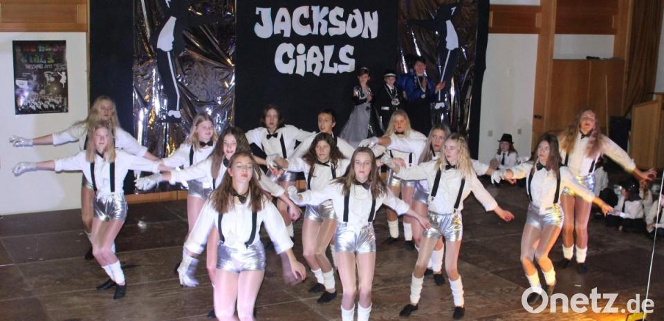 Den Vogel schossen dann die Gardemädchen ab. Als Jackson Girls originell kostümiert, gerieten ihre durch Lichteffekte aufgepeppten Showtänze zu einer Hommage an den King of Pop. Nach der einfallsreichen Interpretation der Hits „They don’t care about us“, „Thriller“ und „Beat me“ durch die Kindergarde war das Publikum schier aus dem Häuschen und verlangte lautstark nach einer Zugabe. Diese Forderung erfüllte schließlich die von Kopf bis Fuß schillernd kostümierte Jugendgarde mit einer anderen, nicht minder perfekt einstudierten Choreographie. Regina Merkl hatte allen Grund zur Zufriedenheit mit ihren Schützlingen, heftete ihnen als Dankeschön einen Pin ans Kostüm.