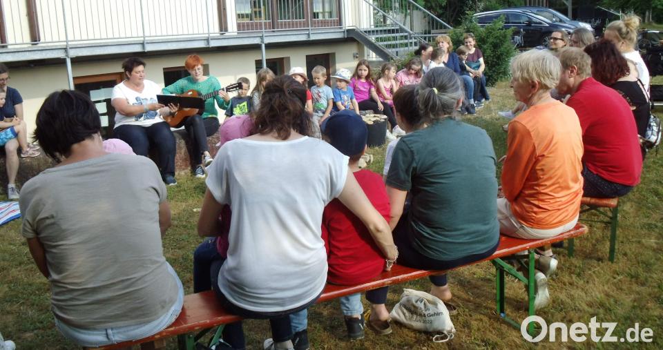 Zwei gute Gründe sind es, warum Kleinkinder kaum eine traditionelle Sonnwendfeier live erleben können: Die Veranstaltung findet erst mit Einbruch der Dunkelheit statt, und das große Feuer kann für die Kleinen gefährlich werden. Dennoch ein Johannisfeuer erleben zu können, ermöglichten ihnen die Leiterinnen der beiden Hirschauer Eltern-Kind-Gruppen, Lisamarie Schmidl und Sonja Gebhard, gemeinsam mit Gemeindereferentin Barbara Schlosser. Sie hatten alle Hirschauer Familien mit Kindern im Kleinkind-, Kindergarten- und Grundschulalter um 18 Uhr in den Garten des katholischen Pfarrheims zu einem Kleinkindergottesdienst mit Johannisfeuer eingeladen. Rund 30 Kinder hatten sich zusammen mit ihren Mamas, Papas sowie Omas und Opas dort versammelt und stimmten, von Lisamarie Schmidl mit der Gitarre begleitet, das Lied „Lasst uns miteinander singen, loben, preisen den Herrn“ an.