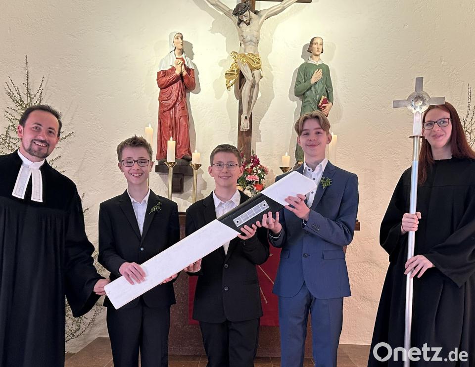 In der Gustav-Adolf-Gedächtniskirche in Hirschau feierten am Hirtensonntag drei Jungen ihre Konfirmation. Sie wurden von Pfarrer Stefan Fischer feierlich eingesegnet. Der Chor "DaCapo" unter der Leitung von Friederike Seidel-Kohl und Thomas Falk an der Orgel umrahmten den Festgottesdienst. Pfarrer Fischer hatte einen der Leitpfosten dabei, die an Straßenrändern zu sehen sind: "Der Glaube und die Konfirmationszeit sollen wie Leitpfosten auf eurem Lebensweg sein", sagte er. Dazu gehörten auch die zehn Gebote und das Vaterunser. Ihr Konfirmandenausflug führt die Jugendlichen in die Trampolinwelt nach Nürnberg. Außerdem war es ihr Wunsch, im Herbst einen Jugendgottesdienst selbst zu gestalten, worüber sich der Pfarrer sehr freute.