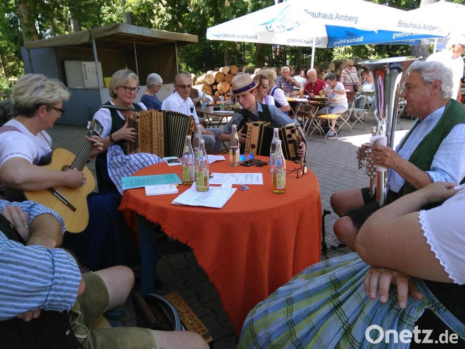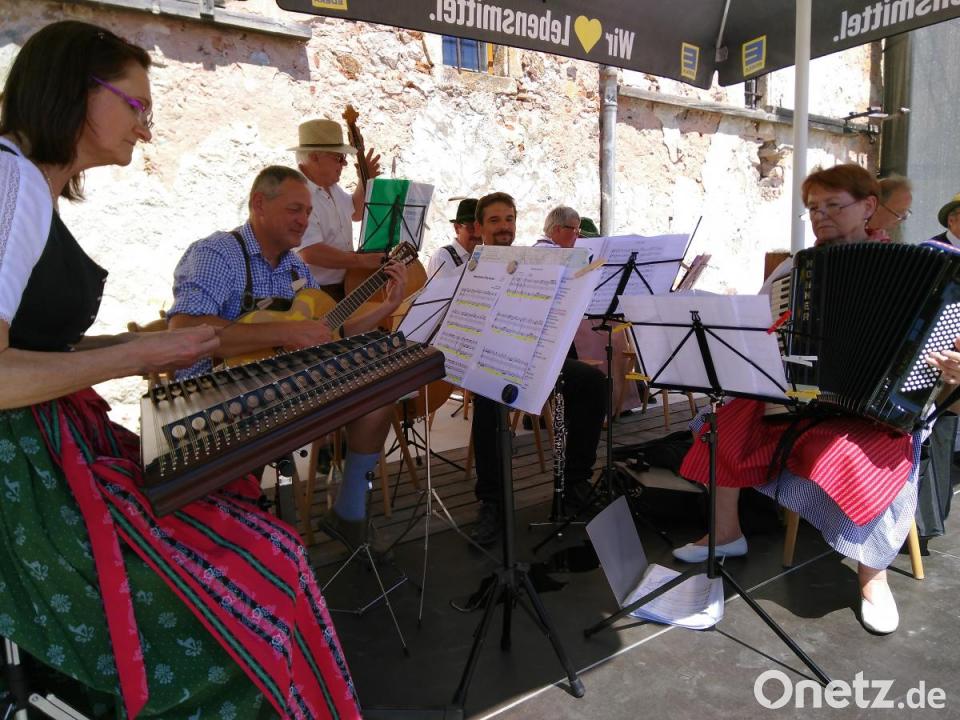 Werner Stein, der Kreisvorsitzende des Nordbayerischen Musikbunds, und Bürgermeister Hermann Falk hießen am Rathaus manche Prominenz und alle Besucher willkommen. Sie wünschten viel Spaß bei verbindender Musik und auch: „Bleibts a bissl da!“ Einen frischen musikalischen Auftakt gestalteten Mitglieder des Musikzugs Hirschau auf dem großen Podium. Auf den weiteren Bühnen wurde gesungen und ein breites Repertoire offeriert, vom bayerischen Duo bis hin zum Swing der 23-köpfigen Big-Band des NBMB. Immer wieder wurden man zwischen Musikstücken mit Witzen unterhalten, und Gertrud Siegert und ihr Kinder- und Jugendchor „Herzwärts“ sangen frisch und fröhlich Volks- und Kinderlieder.