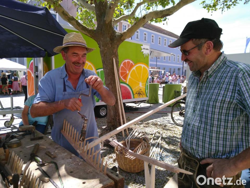 Der Winderl Schorsch aus Bernhof zeigte, wie ein Holzrechen entsteht, verkaufte Reisigbesen und auch Holzschuhe. Sogar Hirschauer Weine von 100 Rebstöcken konnte man probieren. Der Obst- und Gartenbauverein hatte einen Informationsstand, auch die Feuerwehr, das Bayerische Rote Kreuz und manch anderer Verein boten Wissen an und beantworteten gerne Fragen. Waren aus Holz, Stoffen, Filz, Metall standen zum Verkauf, auch Pflanzen, Gewürze, Schmuck und ein Kinderflohmarkt lockten Schau- und Kauflustige an.
