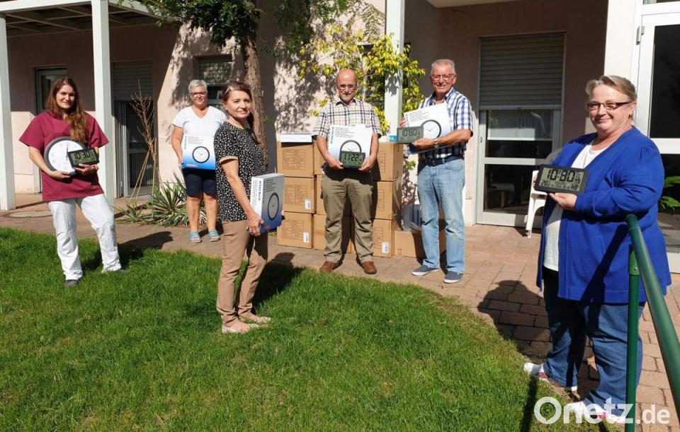 Fast täglich mussten die Uhren in den Zimmern des BRK-Seniorenheims St. Barbara per Hand gestellt und aufgezogen werden. Dank Klaus Conrad ist damit Schluss. Er spendete rund 70 Funkuhren, die selbständig die korrekte Uhrzeit anzeigen.