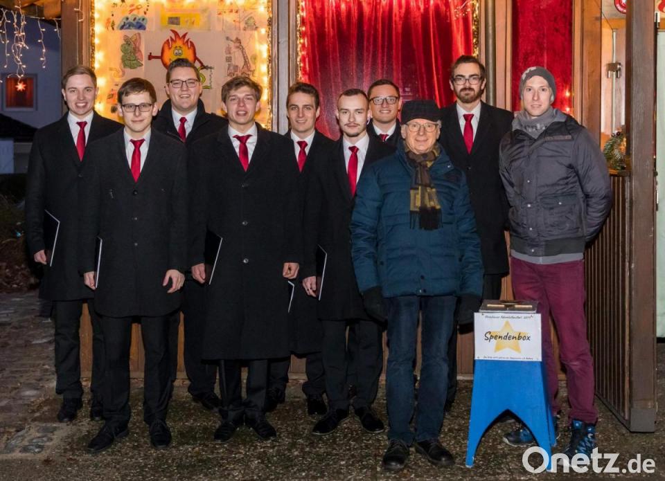 Der erleuchtete Christbaum und die Feuer neben der eigens dafür aufgebauten Bühne boten eine eindrucksvolle Kulisse, als der Gewerbeverbandsvorsitzende Alfred Härtl das Ensemble mit Marco Gräßmann (Tenor), Tim Hartung (Tenor), Jonas Vierjahn (Tenor), Andreas Rottmeier (Bariton), Jonas Meier (Tenor), Anton Braun (Bass), Dominik Schanderl (Bass) und Simon Thelen (Bass, Klavier) begrüßte. Ihr Adventskonzert geriet zu einem spirituellen Erlebnis, das berührte und bestärkte, beseelte und bewegte, auf den Herrn zu warten, um ihn den Weg zu bereiten.