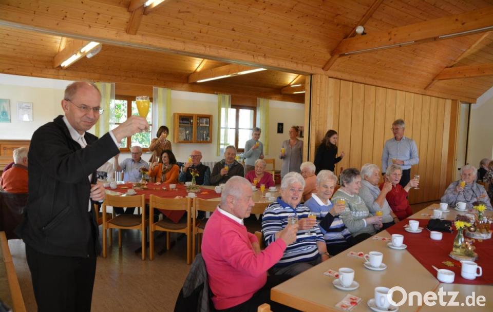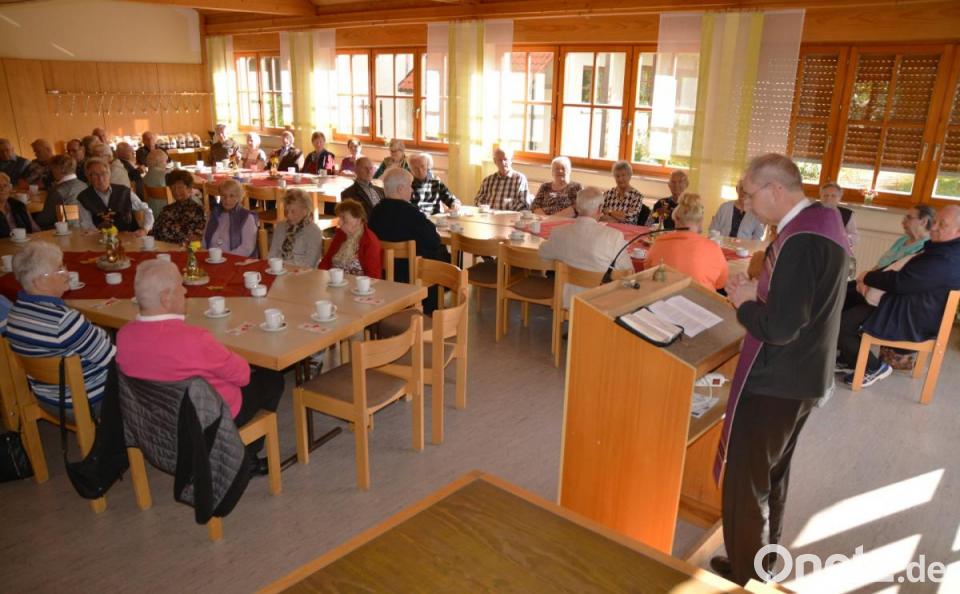 Zu Beginn stimmte Pfarrer Johann Hofmann mit einer kurzen Andacht auf die Feier ein. Er meinte, "dass viele Menschen im Alter besser zuhören können, gelassener sind und erst überlegen, bevor sie antworten". Dies müssten junge Menschen im Laufe der Jahre oft erst lernen. Musikalisch gestaltet wurde die Andacht von Iryna Hermann auf dem Klavier. Danach wurde mit einem Glas Sekt oder Orangensaft angestoßen, und Pfarrer Hofmann wünschte den Teilnehmern noch viele gesunde Jahre. Pfarrgemeinderatsmitglieder aus Hirschau und Ehenfeld bewirteten die Gäste mit Kaffee sowie Kuchen und Torten. Den Liebhabern von deftigen Speisen wurden Häppchen mit Wurst oder Käse gereicht. Auch die dazu passenden Getränke durften natürlich nicht fehlen. Viele interessante Gespräche zwischen den Jubilaren sorgten für eine gute Stimmung im Pfarrheim. Beim Abschied bedankten sich viele für die gute Bewirtung und meinten, dass die Feier für die Jubilare eine positive und sehr schöne Veranstaltung sei und beibehalten werden sollte.