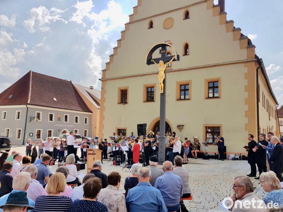 Gut 50 Bläser von 15 Posaunenchören des evangelischen Dekanatsbezirks Sulzbach-Rosenberg kamen im Schatten des Rathauses zum Dekanatsposaunenchor-Tag zusammen. Die Klänge des Einblasens lockten zahlreiche Bürger auf den Marktplatz. Posaunenchor-Obmann Ulrich Siebenbürger stellte das Ensemble und die Tradition kurz vor. Bürgermeister Hermann Falk freute sich über diesen Besuch und lobte das Engagement der evangelischen Kirchengemeinde und ihres Pfarrers vor Ort, die das Leben der Stadt mit vielfältigen Veranstaltungen bereichert. "Heute bläst ein guter Geist", betonte der katholische Pfarrer Hans Peter Bergmann. Gekonnt und charmant führte der Leiter und Dirigent der Vereinigten Posaunenchöre, Kurt Lehnerer aus Sulzbach-Rosenberg, durch das vielfältige und bunte Programm. Es erklangen nicht nur Kirchenlieder. Doch auch die hatten ihren Platz. Es war eine besondere Atmosphäre, als die Anwesenden gemeinsam in altvertraute Choräle wie "Großer Gott, wir loben dich" und "Lobet den Herren, den mächtigen König" einstimmten.