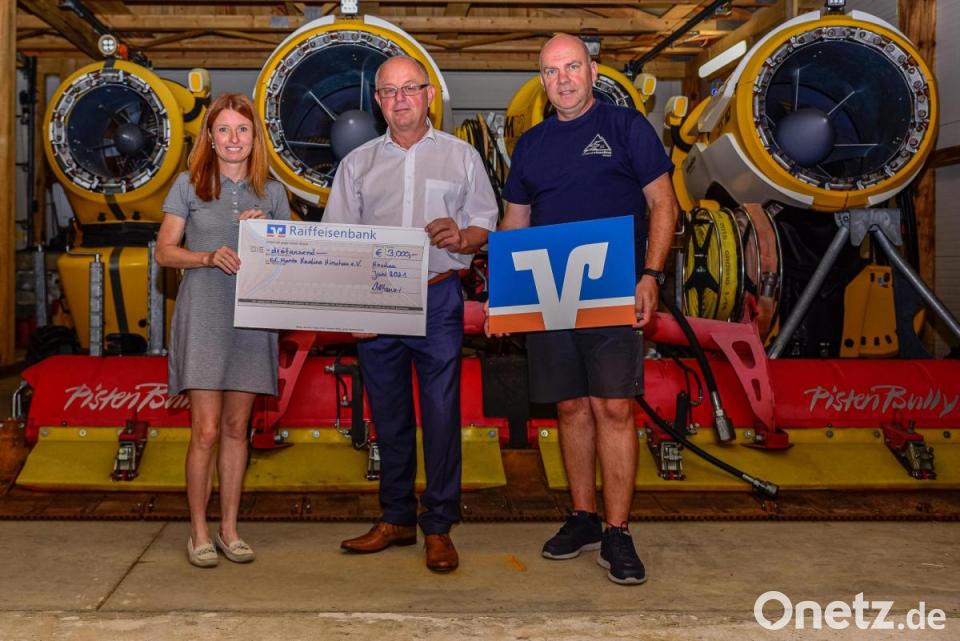 Mit der Raiffeisenbank Hirschau unterstützt ein langjähriger Partner des Skiclubs dieses Vorhaben. Bei der Übergabe einer 3000-Euro-Spende im neuen Multifunktionsgebäude am Rotbühlsender an den stellvertretenden SCMK-Vorsitzenden Christian Reil und Kassenwartin Regina Lingl betonet Raiffeisenbank-Vorstand Norbert Waldhauser wie wichtig ihm dieses Anliegen ist.