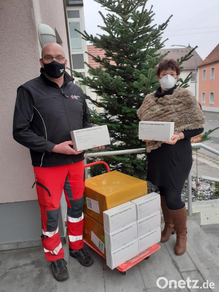 Darauf hat Astrid Geitner, die Heimleiterin des BRK-Seniorenheims St. Barbara in Hirschau, bereits seit Wochen gehofft: Am 27. November übergab ihr Michael Schmid vom Einsatzstab des BRK-Kreisverbands Amberg-Sulzbach den ersten Monatsvorrat an SARS-CoV-2-Antigen-Schnelltests.