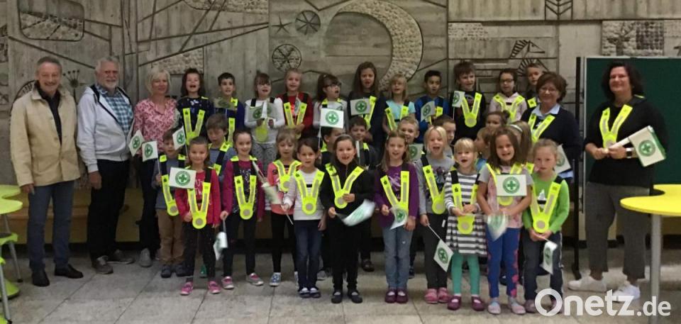ur Übergabe waren Verkehrswacht-Bezirksvorsitzender Gernot Schötz und Vorsitzender Hubert Ritz von der Gebietsverkehrswacht Hirschau-Schnaittenbach in die Schulaula gekommen. Dort wurden sie von den Schulneulingen mit ihren Klassenleiterinnen Elly Schulze und Hildegard Feyrer sowie Rektorin Birgit Härtl erwartet. Die beiden Gäste betonten den hohen Stellenwert, den das Thema Schulwegsicherheit bei der Verkehrswacht genießt. Bei Dunkelheit werde der Schulweg gefährlicher, die Kinder könnten dann leicht von Autofahrern übersehen werden. Die gelb reflektierenden Sicherheitsüberwürfe sorgten dafür, dass man schon von Weitem zu erkennen sei. Der ADAC als bisheriger Sponsor der Warnwesten-Aktion habe sich zurückgezogen, weshalb sich die Kreisverkehrswacht der Sache angenommen habe, finanziell unterstützt durch die Sparkasse Amberg-Sulzbach. Den Dank an die beiden Gäste verband Rektorin Härtl mit dem eindringlichen Hinweis an die Kinder, gut auf ihren Überwurf aufzupassen und ihn auch immer anzuziehen: „Das müsst ihr mir fest versprechen.“
