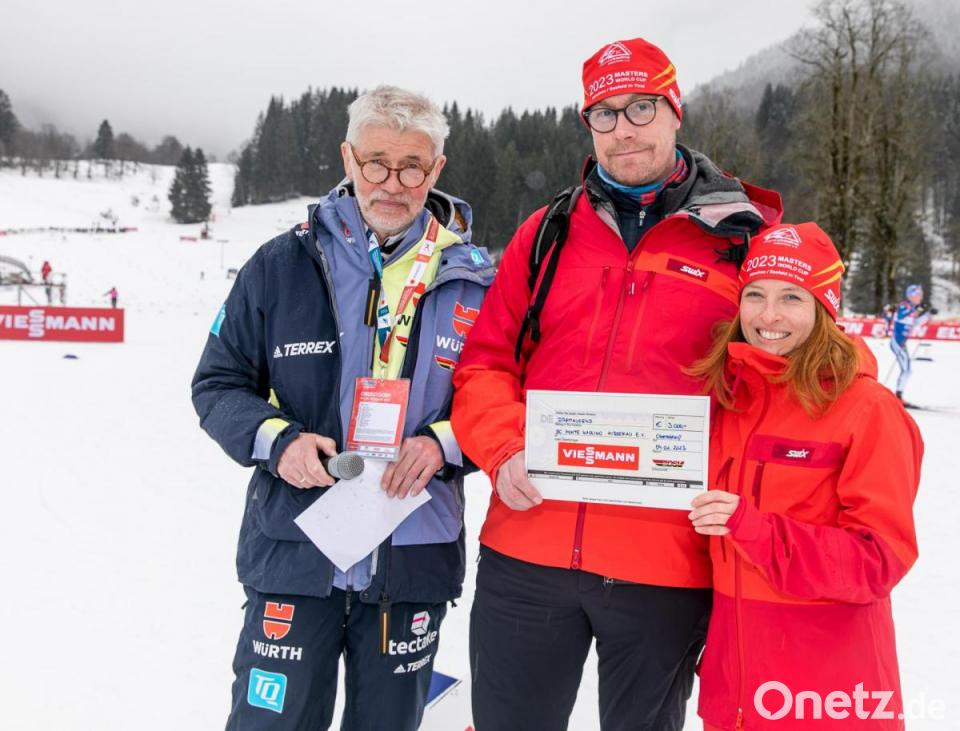 Zur Übergabe des symbolischen Preisgeld- Schecks in Höhe von 3000 Euro im Rahmen des Nordischen Kombinationsweltcups sind Kassierin Regina Lingl und der Medienbeauftragte des SCMK Christian Lingl ins Allgäu nach Oberstdorf angereist um das Preisgeld und die Glückwünsche aus den Händen des Präsidenten des Deutschen Skiverbandes Franz Steinle entgegenzunehmen.
