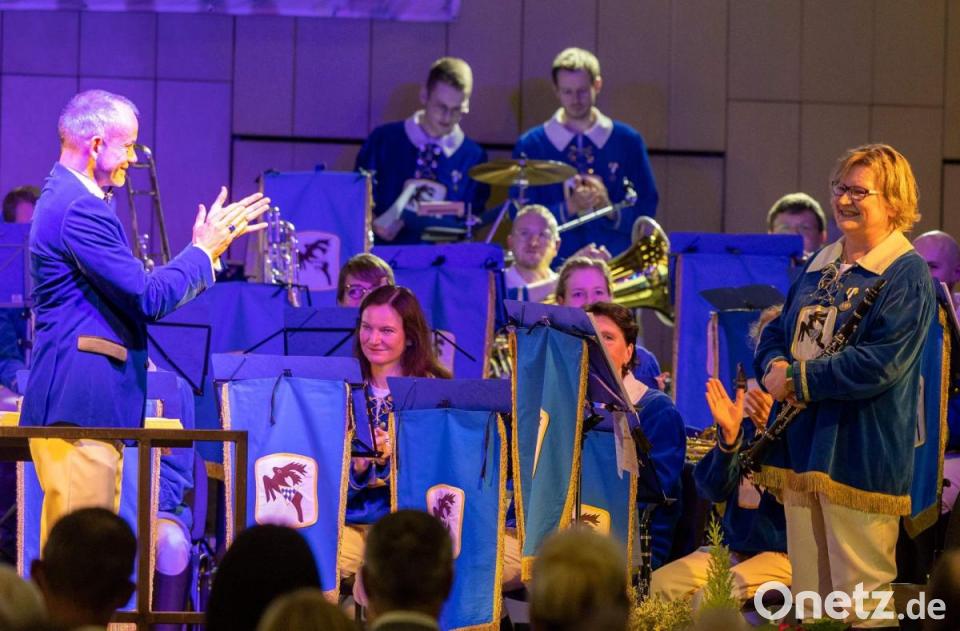 Marcus Hoffmann ließ es bei seiner Konzertpremiere an Showeffekten nicht fehlen. Den Marsch „Unser Präsident“ begleiteten nicht nur zehn elegant ihre Batons schwingende Majoretten – vor der Bühne schossen auch Sparkular-Fontänen in die Höhe, ebenso beim Marsch „Wir grüßen mit Musik“ von Siegfried Rundel. Nicht enden wollende Zugabe-Rufe und stehende Ovationens rangen dem Orchester zunächst Josef Poncars Polka „Chodounska“ und schließlich den Steigermarsch „Glück auf“ ab.