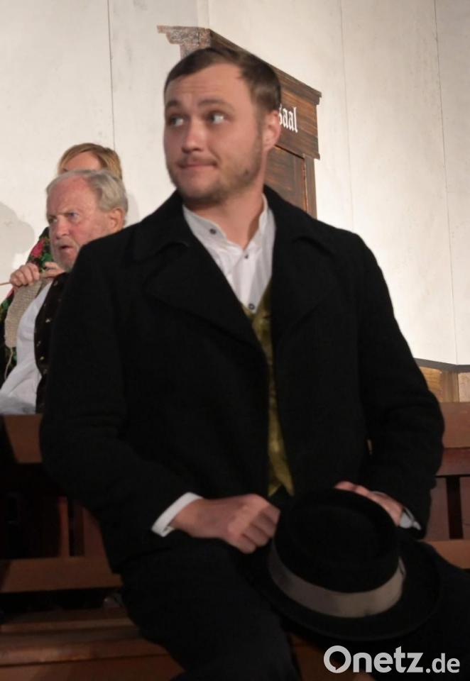 Förmlich auf den Leib geschnitten war Roland Fritsch die Rolle des Betbruders Max Haberer beim zweiten Einakter „Der Parasit“. Geradezu herzzerreißend gab er das Unschuldslamm, das nichts dafür konnte, als er dem Ehepaar Luitpold (Markus Dittrich) und Sophie Daimer (Margit Moser) „wie ein ägyptisches Nilpferd“ auf den Teller mit der reschen Schweinshaxe nieste, nachdem er sich eine kräftige Pris Schnupftabak in die Nase gezogen hatte. Um das Fass zum Überlaufen zu bringen, wischte er die Haxn noch mit seinem Schneutztüchl ab und erklärte den Daimers: „Sie erlauben doch, dann iß i!“ Vom Richter ordentlich ins Gebet genommen wurde auch die Bedienung Ziska, glaubwürdig dargestellt von Meike Birner. Eifersüchtig auf Sophie hatte sie dem Haberer einen Taler für das Niesen bezahlt. Das Urteil „Wirtshausverbot“ für den Betbruder wurde am Ende zur Bewährung ausgesetzt, nachdem der Amtsgerichtsrat zur Freude Haberers selber unvermittelt niesen musste.
