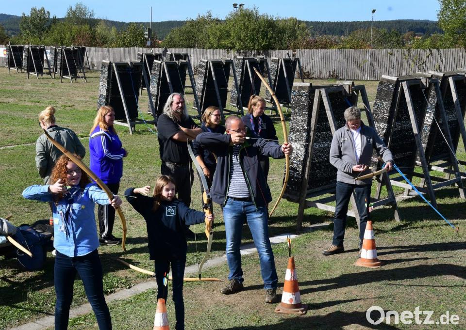 Die Organisatoren haben Glück. Der Herbst zeigt sich von seiner besten Seite. Eine Gruppe ist gerade auf Postenlauf, die anderen üben Bogenschießen. Am Vormittag gab es schon ein gemeinsames Essen, Chilli con Carne oder Kartoffelsuppe. Insgesamt sind heute 16 Mädchen da - und dazu auch 16 Väter, Onkel oder Opas. "Es ist total interessant, mal die Papas zu den Mädchen zu sehen. Meistens holen sie nämlich die Mamas von der Gruppenstunde ab", erzählt eine Gruppenleiterin. Manche Ähnlichkeit zwischen Vater und Tochter ließ sich heute schon feststellen. Der Vater-Tochter-Tag im Schützenheim Diana in Hirschau ist nur eine von vielen Besonderheiten, die sich die PSG einfallen lässt. Er kommt bei Männern und Mädchen gleichermaßen gut an. "Es ist eine tolle Idee. Das Schießen macht Spaß", sagt Matthias. Seine Tochter Lina ist seit sechs Jahren bei den Pfadfindern - seit der ersten Klasse.
