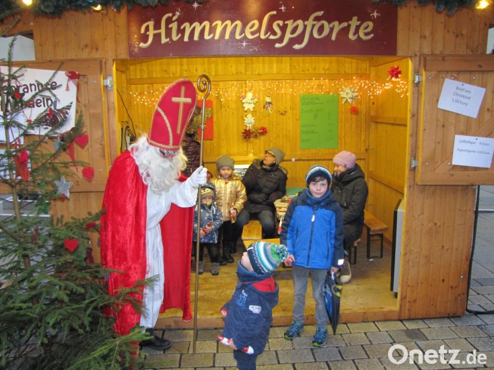 Der zweite Markttag begann mit Dauerregen, der mit kurzen Unterbrechungen bis in den Abend hinein anhielt. Zum Schutz vor der Nässe bauten die Veranstalter kurzfristig einen Pavillon auf. Trotzdem zog so mancher Mitbürger die trockene heimische Stube dem verregneten Marktplatz mit seiner Budenstadt vor. Die widriger Wetterumstände hielten Bischof Nikolaus aber nicht davon ab, den Markt zu besuchen. Nach seiner Botschaft verteilte er Schokoladen-Nikoläuse an die Kinder, besonders brave Besucher sowie an die standhaften Helfer in den Marktständen. Bei einer Visite in der Himmelspforte erkundigte er sich nach Briefen an das Christkind.