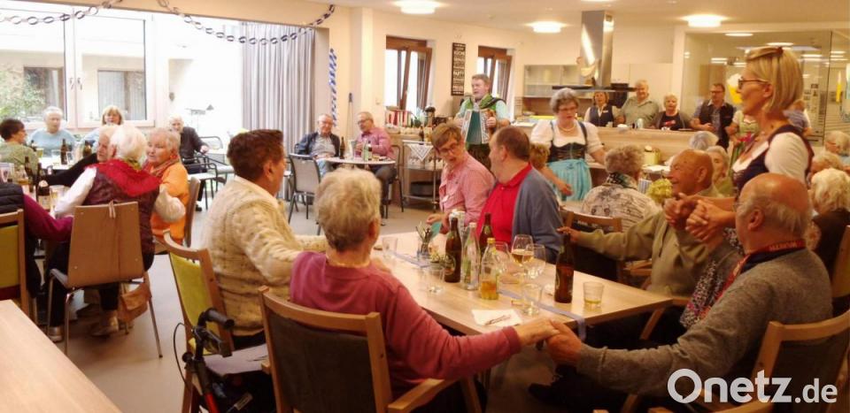 Tagespflege-Leiterin Birgit Seidl konnte sich über ein volles Haus freuen. Der Einladung waren nicht nur die Tagespflegebesucher gefolgt. Die Nachbarbarschaft aus dem Betreuten Wohnen war genauso vertreten wie rüstige Senioren aus dem St.-Barbara-Heim. Dass sie alle stimmungsmäßig auf Hochtouren kamen, dafür sorgte Musikant Heinz Dirnhofer mit seinem Akkordeon. Zu seinen zünftigen Liedern und Melodien wurde gesungen, geschunkelt, geklatscht, ja sogar getanzt.