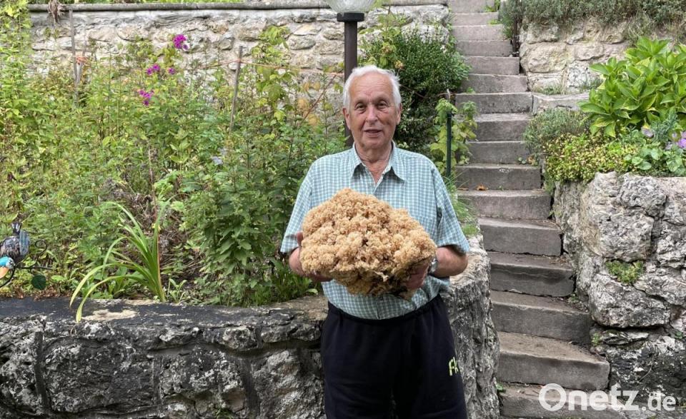 Sammlerglück. Mit diesem Wort wird der Pilzfund von Eberhard Schneider und seiner Frau Dorle aus Hirschbach am besten beschrieben. Die Ausbeute, eine rund sieben Pfund schwere Krause Glucke fanden sie im Wald bei Ziegelhütten in der Gemeinde Hirschbach. Bis zu fünf Kilogramm schwer können diese Pilze werden. Mit einem Pilzmesser haben die beiden ihren Fund sachgemäß abgeschnitten. Die Maße sind beeindruckend knapp 40 Zentimeter hoch und im Durchmesser stattliche 32 Zentimeter und knapp 3,5 Kilogramm brachte der Pilz auf die Waage. „Das ist schon etwas Besonderes, so einen Fund macht man nicht oft“, so der Rentner. Fast täglich gehen die Hirschbacher zurzeit auf Suche. „Es ist entspannend, gesund und man findet Ruhe“ so beschreibt Schneider die Ausflüge. Bevor aus dem Fund eine Mahlzeit für die Familie wird, muss diese noch ordentlich geputzt werden. „Das wird sicherlich ein wenig Zeit beanspruchen bei der Größe“, scherzte Dorle Schneider.