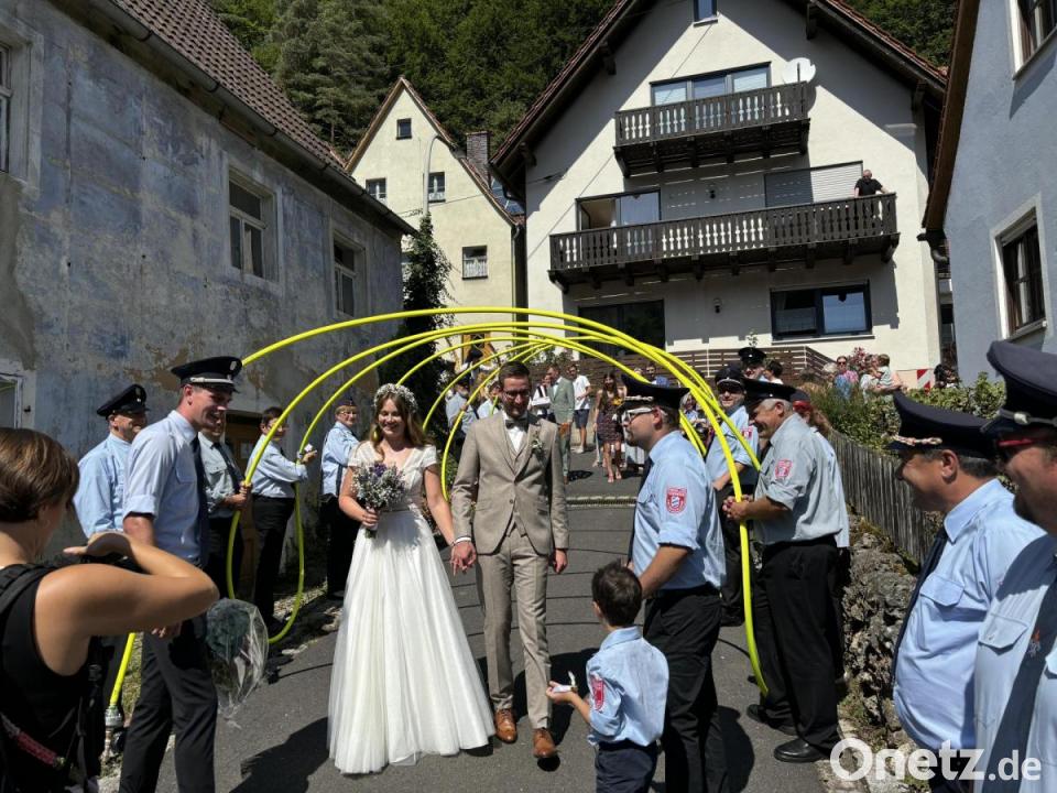 In der Kirche St. Wolfgang in Hirschbach besiegelte Diakon Bernd Deyerl am Samstag, 24. August, die Ehe von Theresa und Johannes Appel. Bereits im Juli hatten sie sich im Standesamt in Eschenfelden vor Bürgermeister Hermann Mertel das Jawort gegeben. Nach der Trauung standen die Feuerwehren Achtel und Eschenfelden, die Mitglieder der Kirwagemeinschaft Eschenfelden, die Kirwaleut' aus Großenfalz, die Schützenvereine aus Neutras und Großenfalz, die Hirschbacher Wasserwacht und der Kindergarten Eschenfelden Spalier. Mit einem langen Autokorso ging es dann zur weltlichen Feier nach Unterklausen bei einer Stodlhochzeit auf dem elterlichen Anwesen des Bräutigams. Dort wurde das Brautpaar mit Salutschüssen und Musik der Achtler Feuerwehrkapelle empfangen.