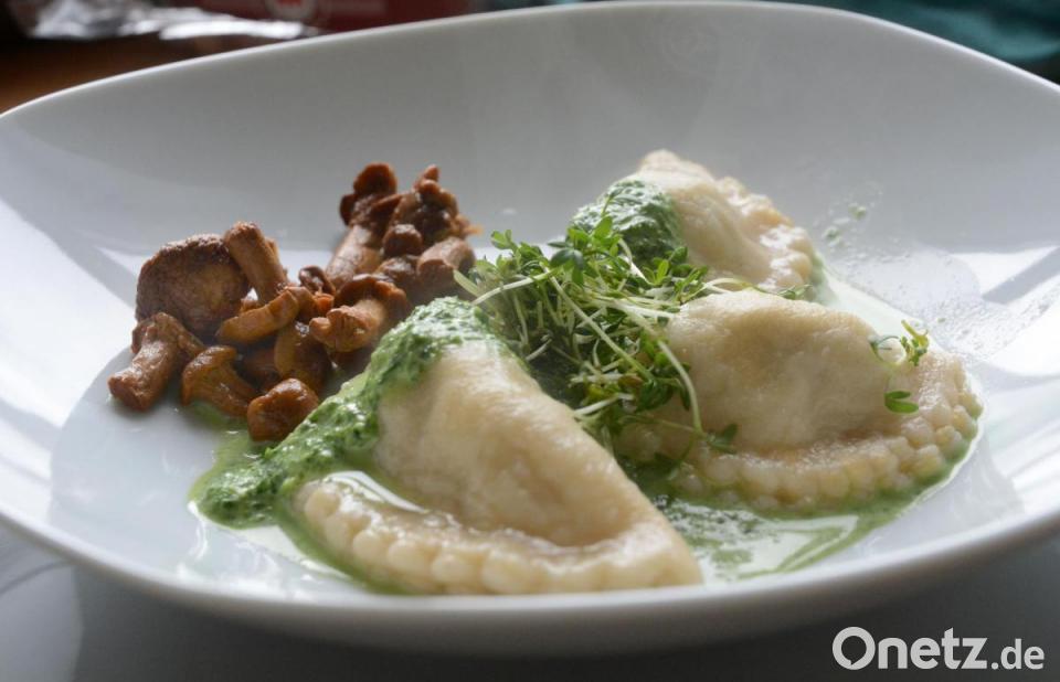 Ravioli in Salzwasser drei bis fünf Minuten garen und herausnehmen. Zum Anrichten in einen tiefen Teller die mit einem Rührstab aufgeschäumte Soße geben, dazu die Ravioli und die Pilze. "Eine schöne und schmackhafte Vorspeise oder ein Zwischengericht", sagt Michael Schiffer. (nd)