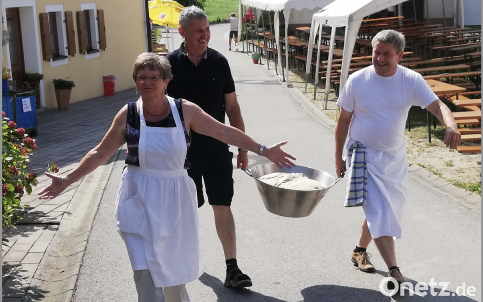 Peter Grötsch und Simon Ertel haben sich bereits letztes Jahr als gutes Team beim Brotbacken ausgezeichnet. Markus Schmidt hat sich seit Jahren auf das Einschießen der Brotkuchen spezialisiert und der Rest des Gemeinderats baut das Zelt auf und macht die Vorbereitungen, schmiert Brote, macht Getränkeausschank und ist im Verkaufsstand. Auch die Partner der Gemeinderäte sind aktiv dabei.