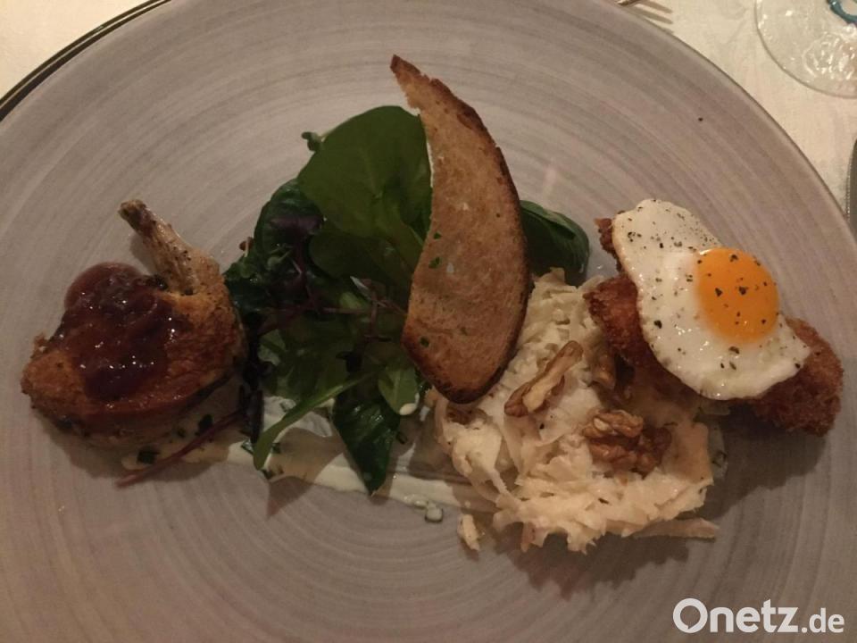 Nach dem Aperitif gab es als Amuse ein Rote-Beete-Knödel auf Spinat und Bergkäse. Mit einem Duett von der Wachtel mit Sellerie, Walnuss, roten Zwiebeln und Feldsalat stimmte die Küche kulinarisch auf das Duett vom Märchenkini und Sisi ein. Das pochierte Kabeljaufilet mediterran mit Chorizograupen, Zucchini, Zitrone und Safran mundete ebenso vorzüglich wie das Zweierlei vom irischen Weiderind "Sauerbraten Style" mit Spitzkrautröllchen, getrüffeltem Kartoffelstampf und Pumpernickel. Auch die Besinnlichkeit, für die der Advent steht, kam nicht zu kurz. So sangen Marc und Janet mit Unterstützung von Christopher Green das ergreifende "Adeste fideles" - in der lateinischen, deutschen und englischen Version.